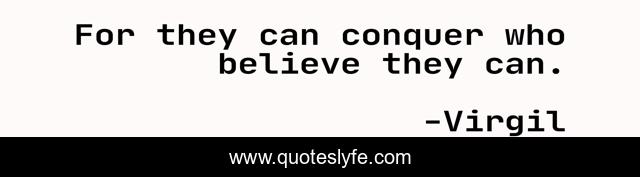 This page presents the quote "For they can conquer who believe they can.". Author of this quote is Virgil. This quote is about self, reliance,.