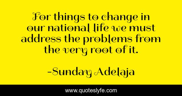 This page presents the quote "For things to change in our national life we must address the problems from the very root of it.". Author of this quote is Sunday Adelaja. This quote is about national-problems, national-transformation, problems,.