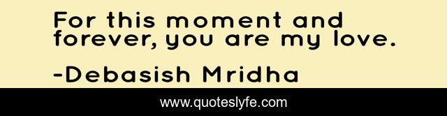 This page presents the quote "For this moment and forever, you are my love.". Author of this quote is Debasish Mridha. This quote is about philosophy, love, forever-love, mridha, debasish, debasish-mridha, affection,.