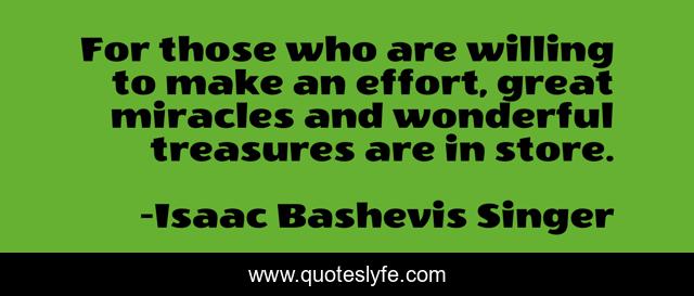 This page presents the quote "For those who are willing to make an effort, great miracles and wonderful treasures are in store.". Author of this quote is Isaac Bashevis Singer. This quote is about miracles, wonderful, effort,.