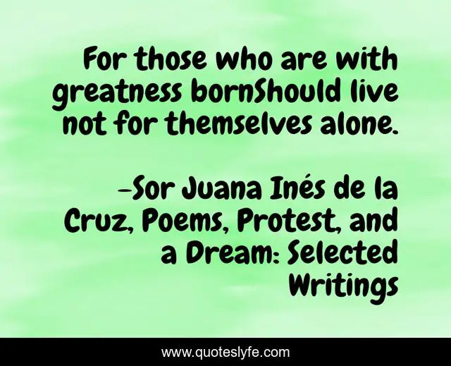 This page presents the quote "For those who are with greatness bornShould live not for themselves alone.". Author of this quote is Sor Juana Inés de la Cruz, Poems, Protest, and a Dream: Selected Writings. .