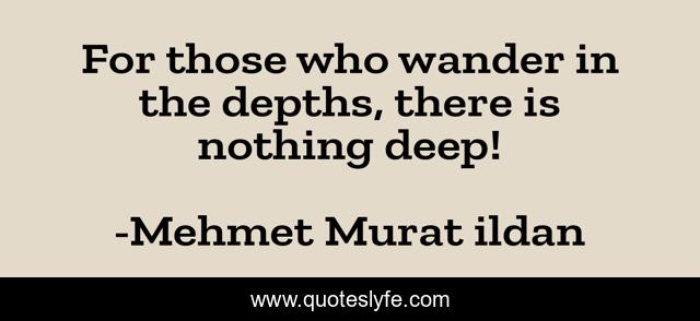 This page presents the quote "For those who wander in the depths, there is nothing deep!". Author of this quote is Mehmet Murat ildan. This quote is about turkish-aphorisms, depths, mehmet-murat-ildan, ildan-wise-sayings, turkish, ildan-wisdom, turkish-sayings, turkish-playwrights, deep,.