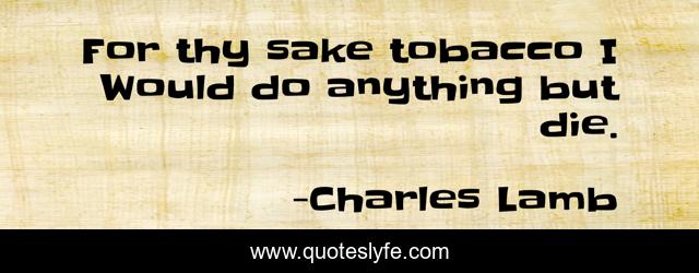 "Charles Lamb Quotes." Quoteslyfe.com, 2025. Mon. 08 Dec. 2025. <https://www.quoteslyfe.com/quote/For-thy-sake-tobacco-I-Would-do-278109>.