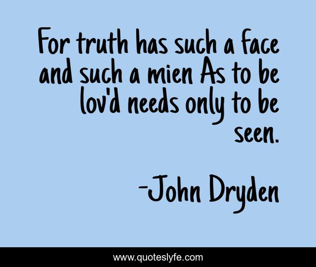 This page presents the quote "For truth has such a face and such a mien As to be lov'd needs only to be seen.". Author of this quote is John Dryden. .