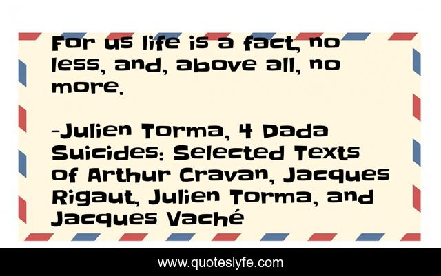 "Julien Torma, 4 Dada Suicides: Selected Texts of Arthur Cravan, Jacques Rigaut, Julien Torma, and Jacques Vaché Quotes." Quoteslyfe.com, 2025. Mon. 08 Dec. 2025. <https://www.quoteslyfe.com/quote/For-us-life-is-a-fact-no-211989>.