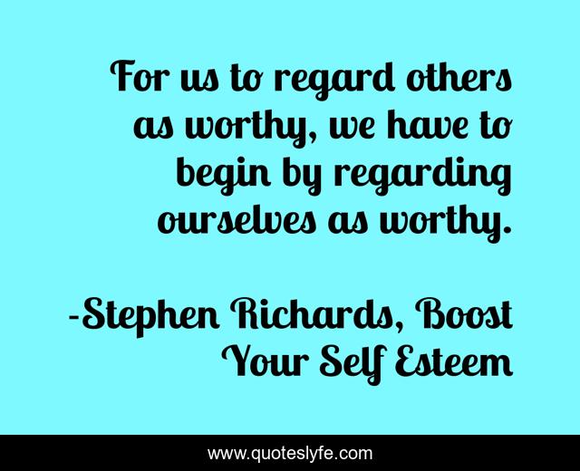 "Stephen Richards, Boost Your Self Esteem Quotes." Quoteslyfe.com, 2025. Mon. 08 Dec. 2025. <https://www.quoteslyfe.com/quote/For-us-to-regard-others-as-worthy-36047>.