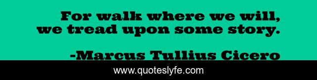 This page presents the quote "For walk where we will, we tread upon some story.". Author of this quote is Marcus Tullius Cicero. This quote is about travel, history,.
