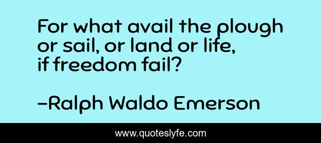 This page presents the quote "For what avail the plough or sail, or land or life, if freedom fail?". Author of this quote is Ralph Waldo Emerson. This quote is about ralph-waldo-emerson, freedom, inspirational, enthusiasm,.
