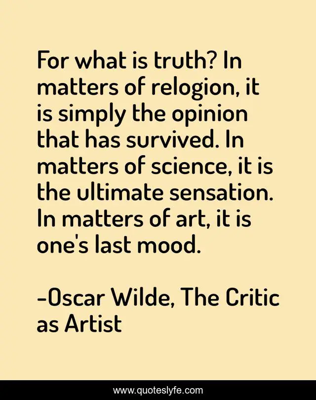 "Oscar Wilde, The Critic as Artist Quotes." Quoteslyfe.com, 2025. Fri. 05 Dec. 2025. <https://www.quoteslyfe.com/quote/For-what-is-truth-In-matters-of-30331>.