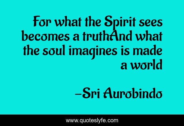 This page presents the quote "For what the Spirit sees becomes a truthAnd what the soul imagines is made a world". Author of this quote is Sri Aurobindo. This quote is about enthusiasm, spiritual, inspirational,.