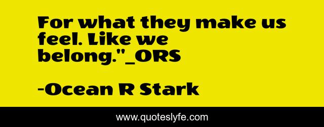 This page presents the quote "For what they make us feel. Like we belong."_ORS". Author of this quote is Ocean R Stark. This quote is about being, faith, lovers,.