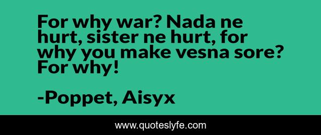 "Poppet, Aisyx Quotes." Quoteslyfe.com, 2025. Sat. 06 Dec. 2025. <https://www.quoteslyfe.com/quote/For-why-war-Nada-ne-hurt-sister-132577>.
