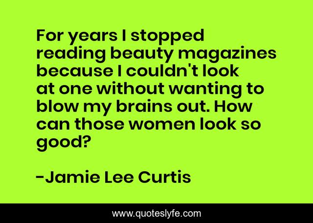This page presents the quote "For years I stopped reading beauty magazines because I couldn't look at one without wanting to blow my brains out. How can those women look so good?". Author of this quote is Jamie Lee Curtis. .