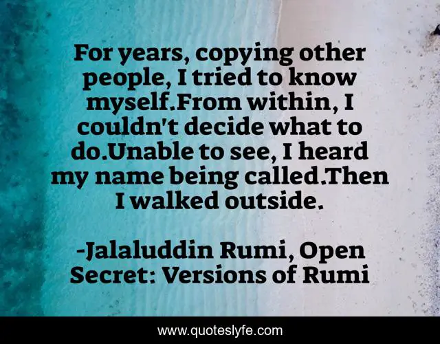 "Jalaluddin Rumi, Open Secret: Versions of Rumi Quotes." Quoteslyfe.com, 2025. Fri. 05 Dec. 2025. <https://www.quoteslyfe.com/quote/For-years-copying-other-people-I-tried-171524>.