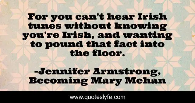 "Jennifer Armstrong, Becoming Mary Mehan Quotes." Quoteslyfe.com, 2025. Fri. 05 Dec. 2025. <https://www.quoteslyfe.com/quote/For-you-can-t-hear-Irish-tunes-78922>.