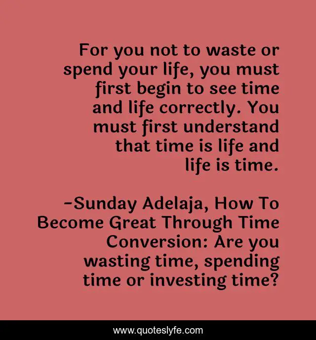 "Sunday Adelaja, How To Become Great Through Time Conversion: Are you wasting time, spending time or investing time? Quotes." Quoteslyfe.com, 2025. Sat. 06 Dec. 2025. <https://www.quoteslyfe.com/quote/For-you-not-to-waste-or-spend-39243>.