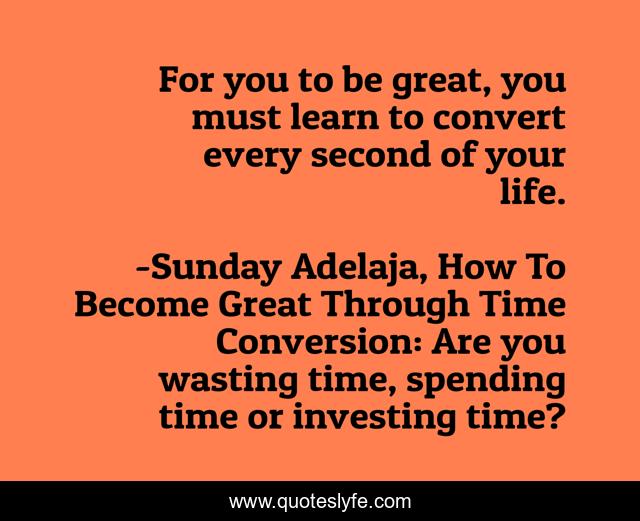 Check all other quotes by Sunday Adelaja, How To Become Great Through Time Conversion: Are you wasting time, spending time or investing time?