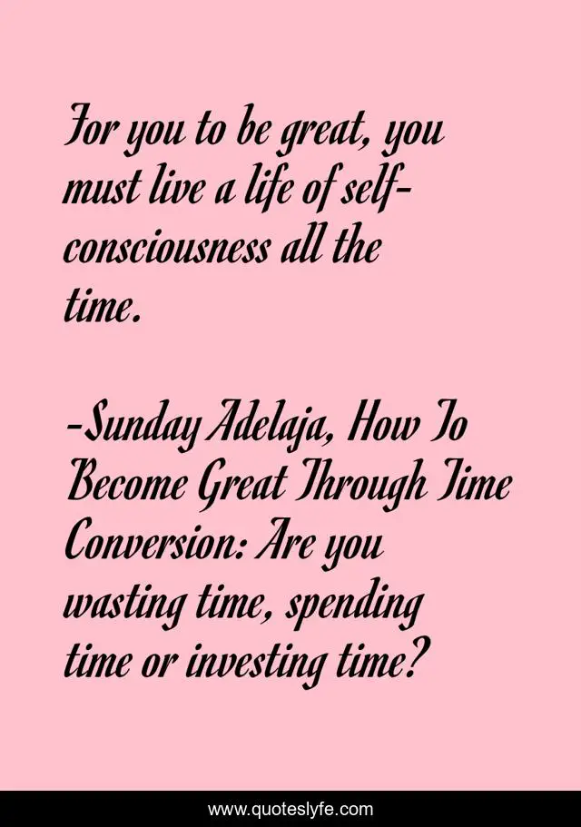 "Sunday Adelaja, How To Become Great Through Time Conversion: Are you wasting time, spending time or investing time? Quotes." Quoteslyfe.com, 2025. Sun. 07 Dec. 2025. <https://www.quoteslyfe.com/quote/For-you-to-be-great-you-must-39281>.