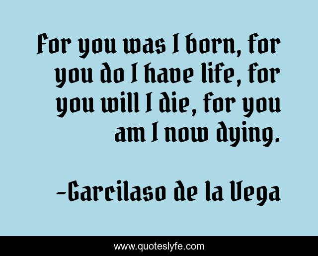 This page presents the quote "For you was I born, for you do I have life, for you will I die, for you am I now dying.". Author of this quote is Garcilaso de la Vega. This quote is about devotion, love, obsession, poetry, affection,.