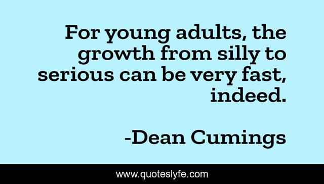 This page presents the quote "For young adults, the growth from silly to serious can be very fast, indeed.". Author of this quote is Dean Cumings. This quote is about positive, confidence, motivational, optimistic,.