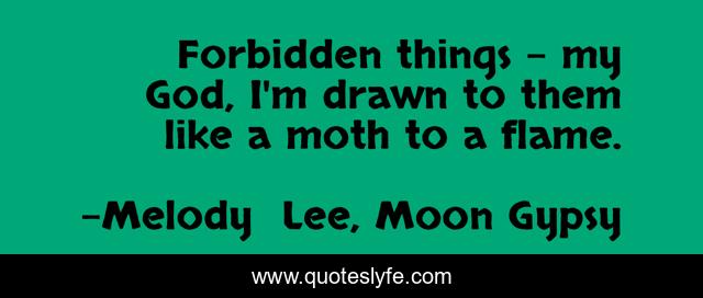 "Melody Lee, Moon Gypsy Quotes." Quoteslyfe.com, 2025. Sun. 07 Dec. 2025. <https://www.quoteslyfe.com/quote/Forbidden-things-my-God-I-m-drawn-11855>.