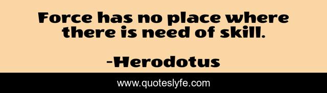 This page presents the quote "Force has no place where there is need of skill.". Author of this quote is Herodotus. This quote is about need, skill, place,.