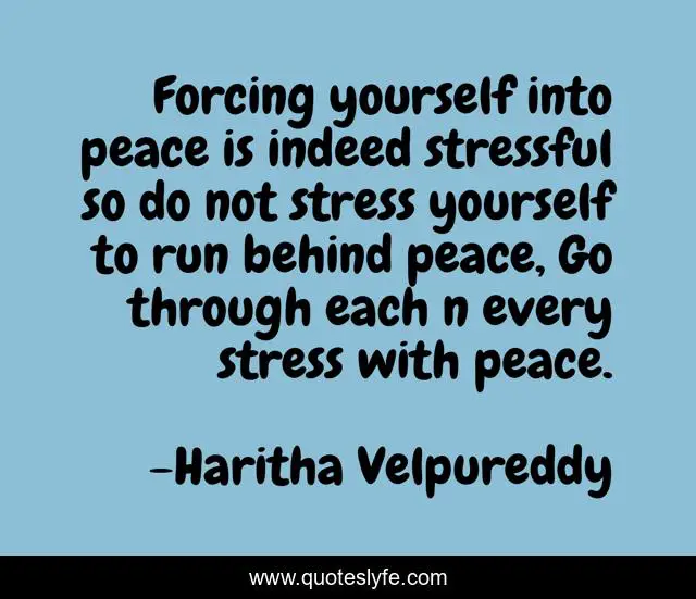 "Haritha Velpureddy Quotes." Quoteslyfe.com, 2025. Fri. 05 Dec. 2025. <https://www.quoteslyfe.com/quote/Forcing-yourself-into-peace-is-indeed-stressful-14676>.