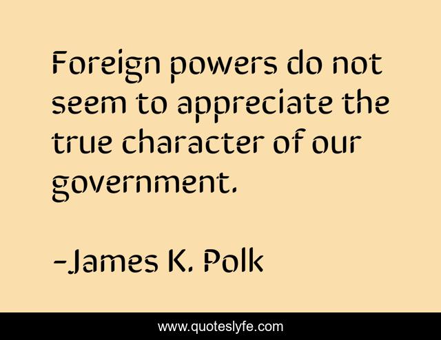 This page presents the quote "Foreign powers do not seem to appreciate the true character of our government.". Author of this quote is James K. Polk. This quote is about appreciate, true, character,.