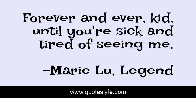 This page presents the quote "Forever and ever, kid, until you're sick and tired of seeing me.". Author of this quote is Marie Lu, Legend. This quote is about love, marie-lu, brother, sad, inpirational, legend, affection,.