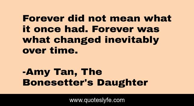 This page presents the quote "Forever did not mean what it once had. Forever was what changed inevitably over time.". Author of this quote is Amy Tan, The Bonesetter's Daughter. .