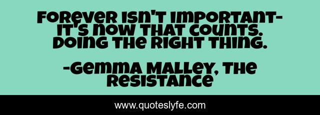 This page presents the quote "Forever isn't important-it's now that counts. Doing the right thing.". Author of this quote is Gemma Malley, The Resistance. This quote is about forever, now, right-thing,.