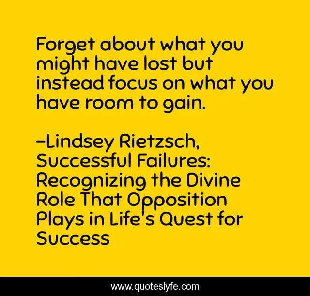"Lindsey Rietzsch, Successful Failures: Recognizing the Divine Role That Opposition Plays in Life's Quest for Success Quotes." Quoteslyfe.com, 2025. Sat. 06 Dec. 2025. <https://www.quoteslyfe.com/quote/Forget-about-what-you-might-have-lost-94781>.