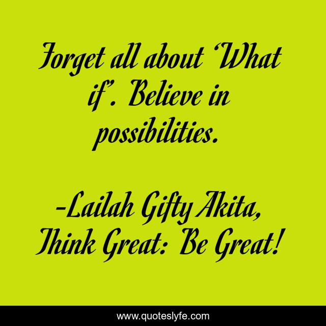 "Lailah Gifty Akita, Think Great: Be Great! Quotes." Quoteslyfe.com, 2025. Fri. 05 Dec. 2025. <https://www.quoteslyfe.com/quote/Forget-all-about-What-if-Believe-in-34647>.