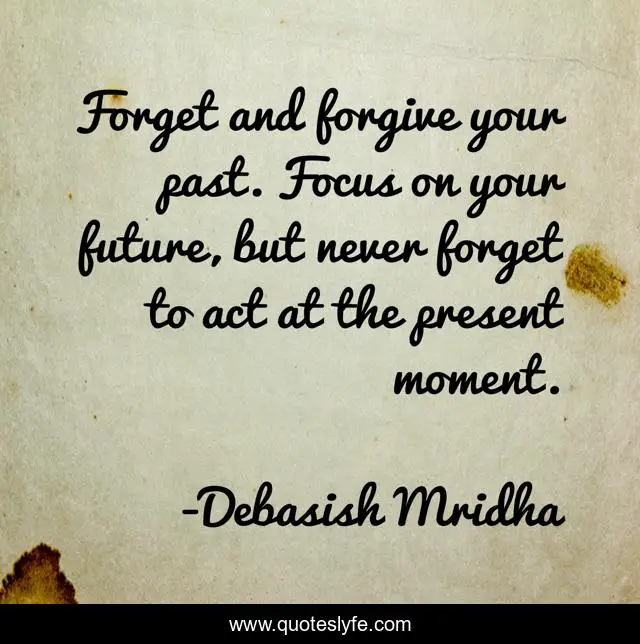 "Debasish Mridha Quotes." Quoteslyfe.com, 2025. Fri. 05 Dec. 2025. <https://www.quoteslyfe.com/quote/Forget-and-forgive-your-past-Focus-on-74692>.