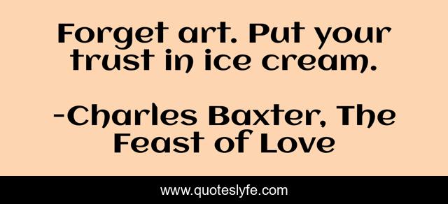 This page presents the quote "Forget art. Put your trust in ice cream.". Author of this quote is Charles Baxter, The Feast of Love. This quote is about art, humor, ice-cream,.