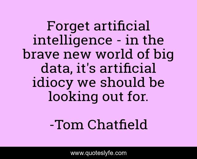 This page presents the quote "Forget artificial intelligence - in the brave new world of big data, it's artificial idiocy we should be looking out for.". Author of this quote is Tom Chatfield. This quote is about world, brave, data,.