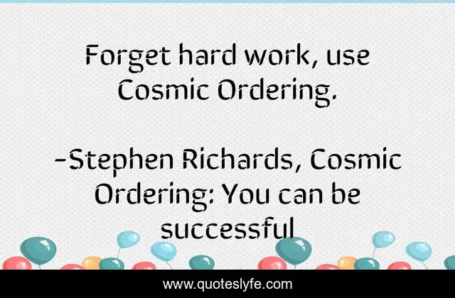 "Stephen Richards, Cosmic Ordering: You can be successful Quotes." Quoteslyfe.com, 2025. Sat. 06 Dec. 2025. <https://www.quoteslyfe.com/quote/Forget-hard-work-use-Cosmic-Ordering-16981>.