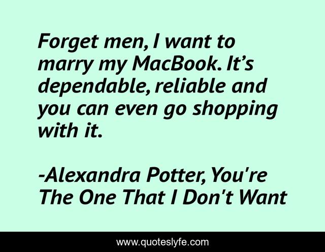"Alexandra Potter, You're The One That I Don't Want Quotes." Quoteslyfe.com, 2025. Fri. 05 Dec. 2025. <https://www.quoteslyfe.com/quote/Forget-men-I-want-to-marry-my-6956>.