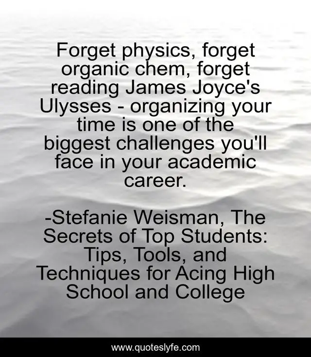 "Stefanie Weisman, The Secrets of Top Students: Tips, Tools, and Techniques for Acing High School and College Quotes." Quoteslyfe.com, 2025. Sat. 06 Dec. 2025. <https://www.quoteslyfe.com/quote/Forget-physics-forget-organic-chem-forget-reading-254520>.