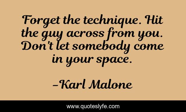 This page presents the quote "Forget the technique. Hit the guy across from you. Don't let somebody come in your space.". Author of this quote is Karl Malone. This quote is about guy, forget,.