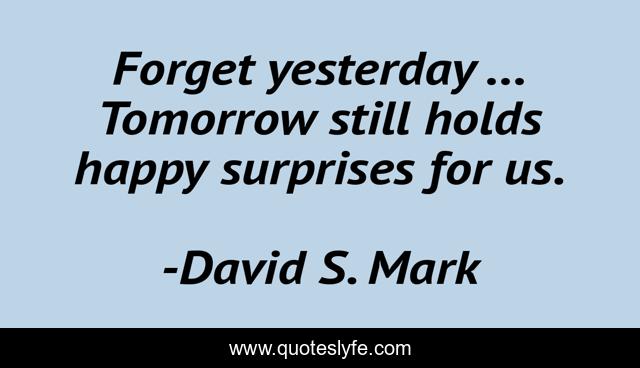 "David S. Mark Quotes." Quoteslyfe.com, 2025. Fri. 05 Dec. 2025. <https://www.quoteslyfe.com/quote/Forget-yesterday-Tomorrow-still-holds-happy-surprises-19547>.