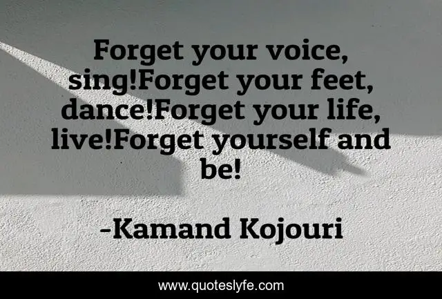 "Kamand Kojouri Quotes." Quoteslyfe.com, 2025. Mon. 08 Dec. 2025. <https://www.quoteslyfe.com/quote/Forget-your-voice-sing-Forget-your-feet-44437>.
