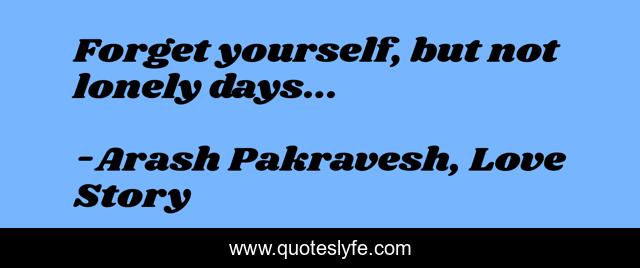 "Arash Pakravesh, Love Story Quotes." Quoteslyfe.com, 2025. Fri. 05 Dec. 2025. <https://www.quoteslyfe.com/quote/Forget-yourself-but-not-lonely-days-202168>.