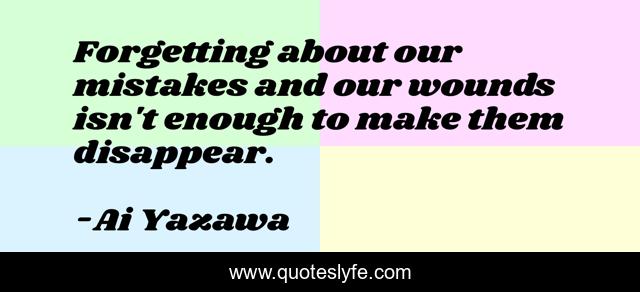 "Ai Yazawa Quotes." Quoteslyfe.com, 2025. Sat. 06 Dec. 2025. <https://www.quoteslyfe.com/quote/Forgetting-about-our-mistakes-and-our-wounds-75442>.