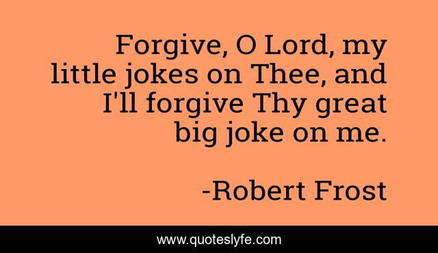 This page presents the quote "Forgive, O Lord, my little jokes on Thee, and I'll forgive Thy great big joke on me.". Author of this quote is Robert Frost. This quote is about me, forgiveness, forgive,.