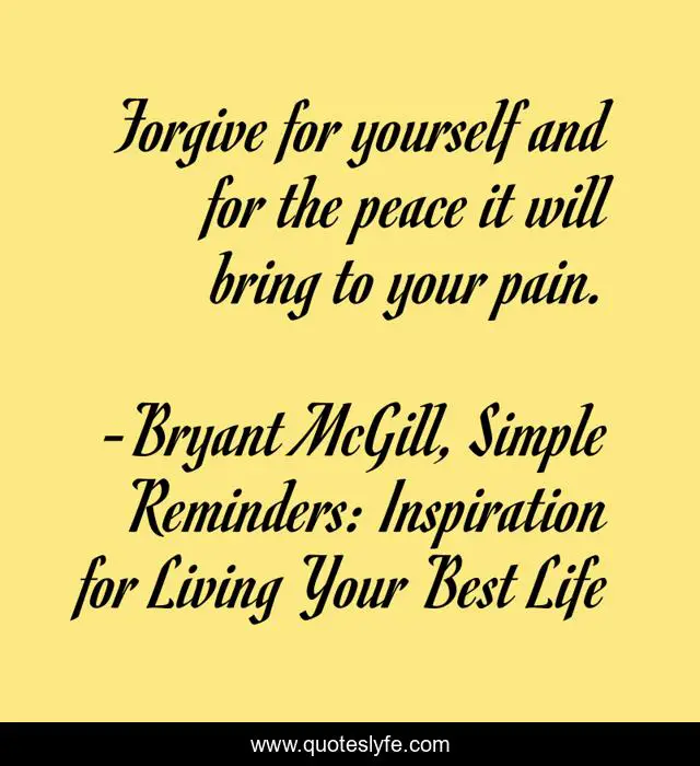 "Bryant McGill, Simple Reminders: Inspiration for Living Your Best Life Quotes." Quoteslyfe.com, 2025. Fri. 05 Dec. 2025. <https://www.quoteslyfe.com/quote/Forgive-for-yourself-and-for-the-peace-122137>.