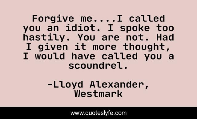 "Lloyd Alexander, Westmark Quotes." Quoteslyfe.com, 2025. Fri. 05 Dec. 2025. <https://www.quoteslyfe.com/quote/Forgive-me-I-called-you-an-idiot-40655>.