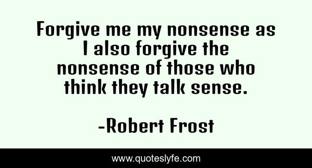 This page presents the quote "Forgive me my nonsense as I also forgive the nonsense of those who think they talk sense.". Author of this quote is Robert Frost. .
