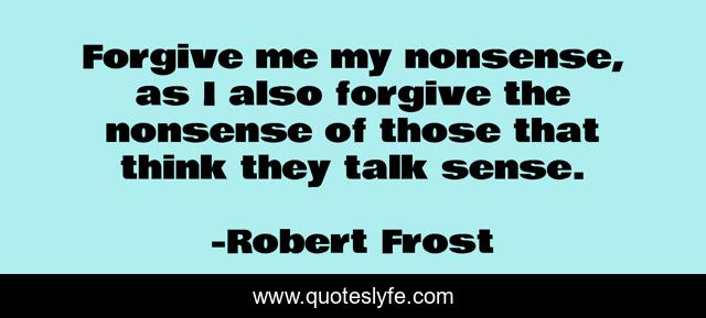 This page presents the quote "Forgive me my nonsense, as I also forgive the nonsense of those that think they talk sense.". Author of this quote is Robert Frost. This quote is about me, forgive, think,.