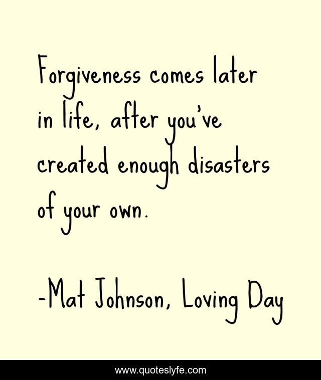 "Mat Johnson, Loving Day Quotes." Quoteslyfe.com, 2025. Fri. 05 Dec. 2025. <https://www.quoteslyfe.com/quote/Forgiveness-comes-later-in-life-after-you-121996>.
